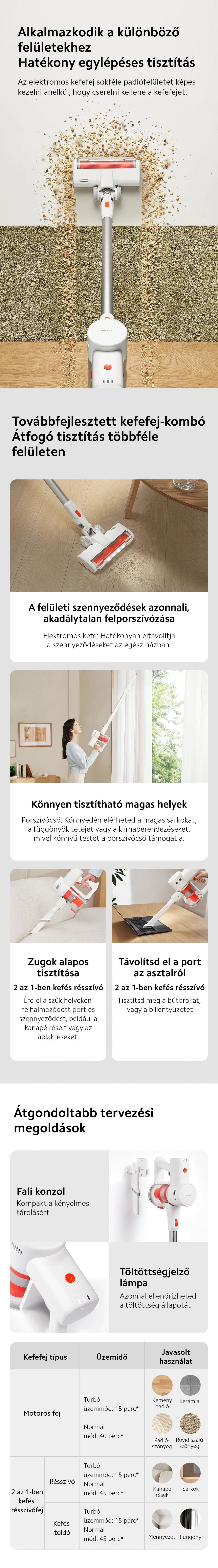 *15 perc: Teljesen feltöltött állapotban az elektromos keferúddal vagy a 2 az 1-ben kefe fúvókával a fő egység teljes erővel 15 percig bírja Turbó módban. A Suzhou Green Innovation Testing Technology Service Co., Ltd. által tesztelt. Jelentésszám: 0924-23A-01.